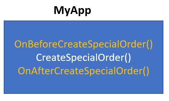 Here another extension can subscribe to the events and make some actions or change the standard behavior of the CreateSpecialOrder method. This is a pattern that you have to remember always, or your solution will not be customizable.