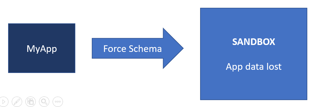 Unfortunately, during the development phase of an extension is quite common to “correct mistakes” and have the needs to “force” schema changes. If you deploy with “schemaUpdateMode”: “Recreate”