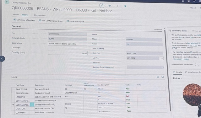 - quality check for purchased, produced, and assembled items