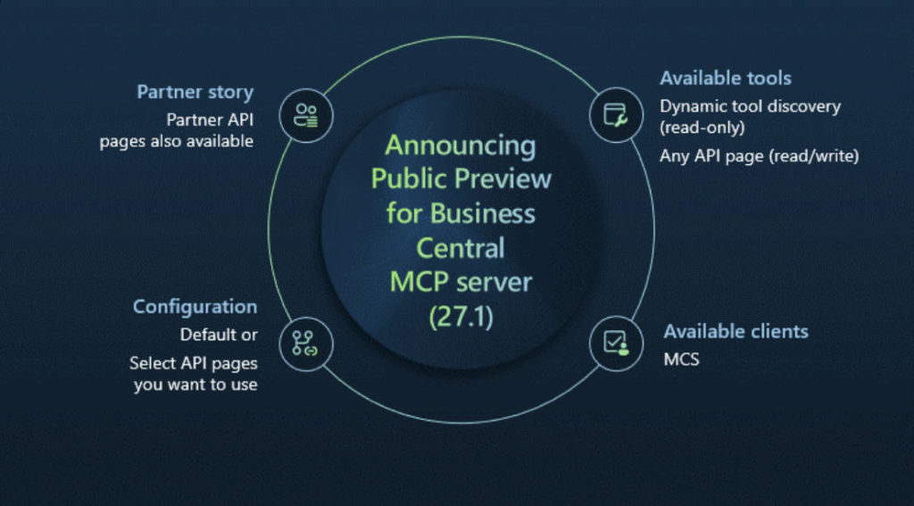 Starting from Dynamics 365 Business Central version 27.1, the public preview of the Business Central MCP server will be available: