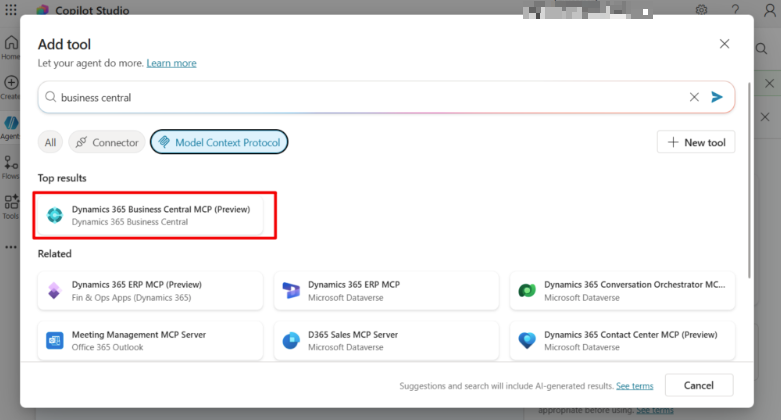 When activated, the MCP server will be available to be consumed on tools that support MCP servers, like Copilot Studio (officially the first tool supported by Microsoft for this MCP server).