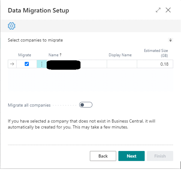 Once SaaS environment is connected to your on-prem database, select companies to migrate: