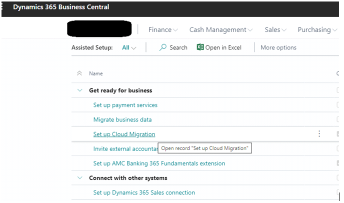 Go to your SaaS environment and find Assisted Setup page: